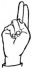На ћирилици написано НЕБОЈША БАДРИЋ састоји се из 13 слова [?]. Исписано ћириличном једноручном азбуком за глувонеме: